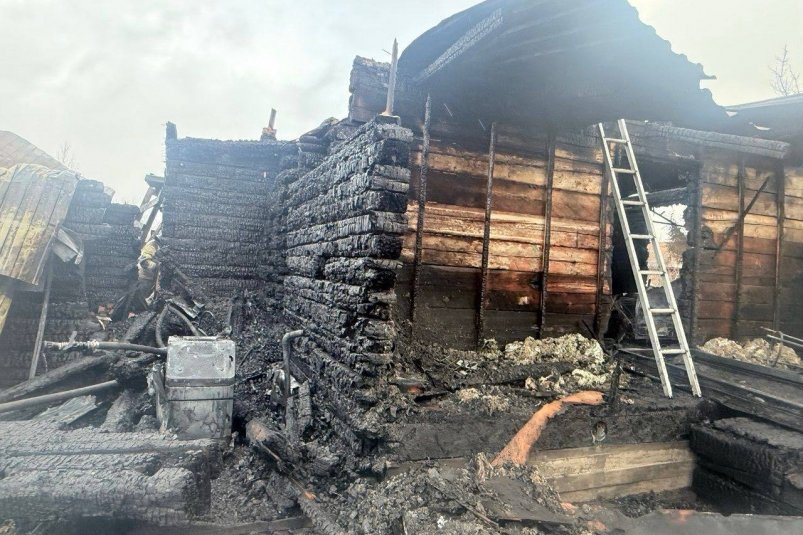Появилась информация, что предположительно пожар в двухквартирном доме произошёл из-за неосторожного обращения с печным отоплением.
