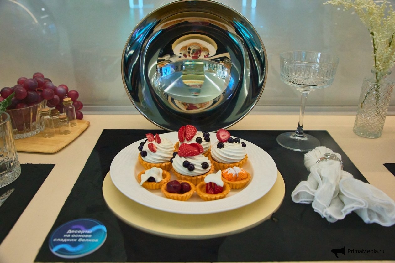 В самом начале гостей музея встречает инсталляция, посвящённая "еде будущего". Здесь представлены привычные продукты питания, но произведённые из нетрадиционного сырья, например, "батончики из кузнечиков" или "хлеб из водорослей". Экспозиция наглядно показывает, насколько ресурсоёмким является традиционное животноводство. Чтобы вырастить корову и получить из неё условные наггетсы или котлеты, требуется около 15 тонн воды. В то же время эквивалентное количество белка можно получить в лаборатории хроматографического разделения: учёные выбирают нужный белок, выращивают его, а когда культура достигает необходимого объёма, из него формируют продукт — практически в том же виде, что и привычные мясные изделия. Да, лабораторные процессы пока требуют времени, но это важный этап отработки технологий, которые в дальнейшем будут внедряться в промышленное производство.