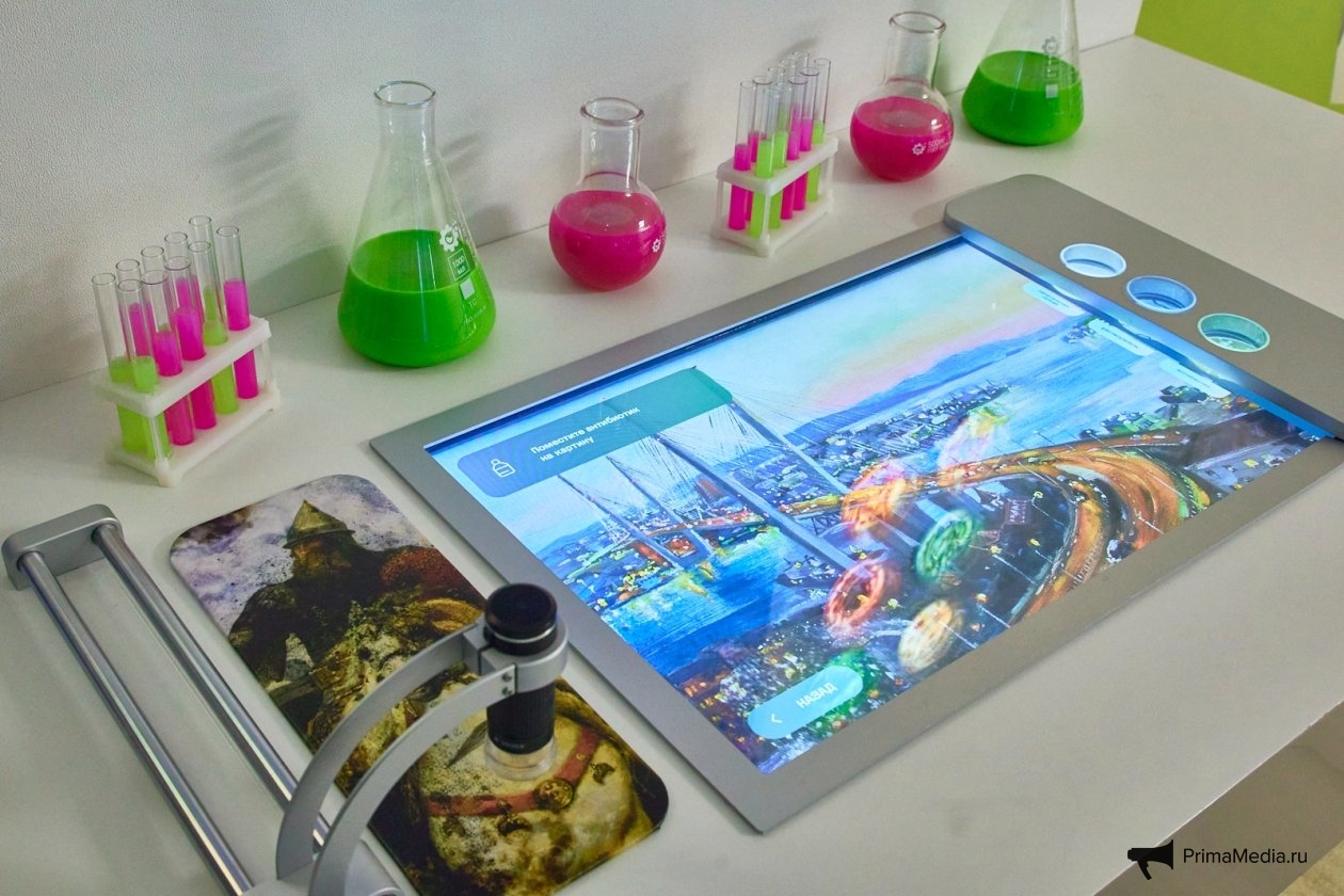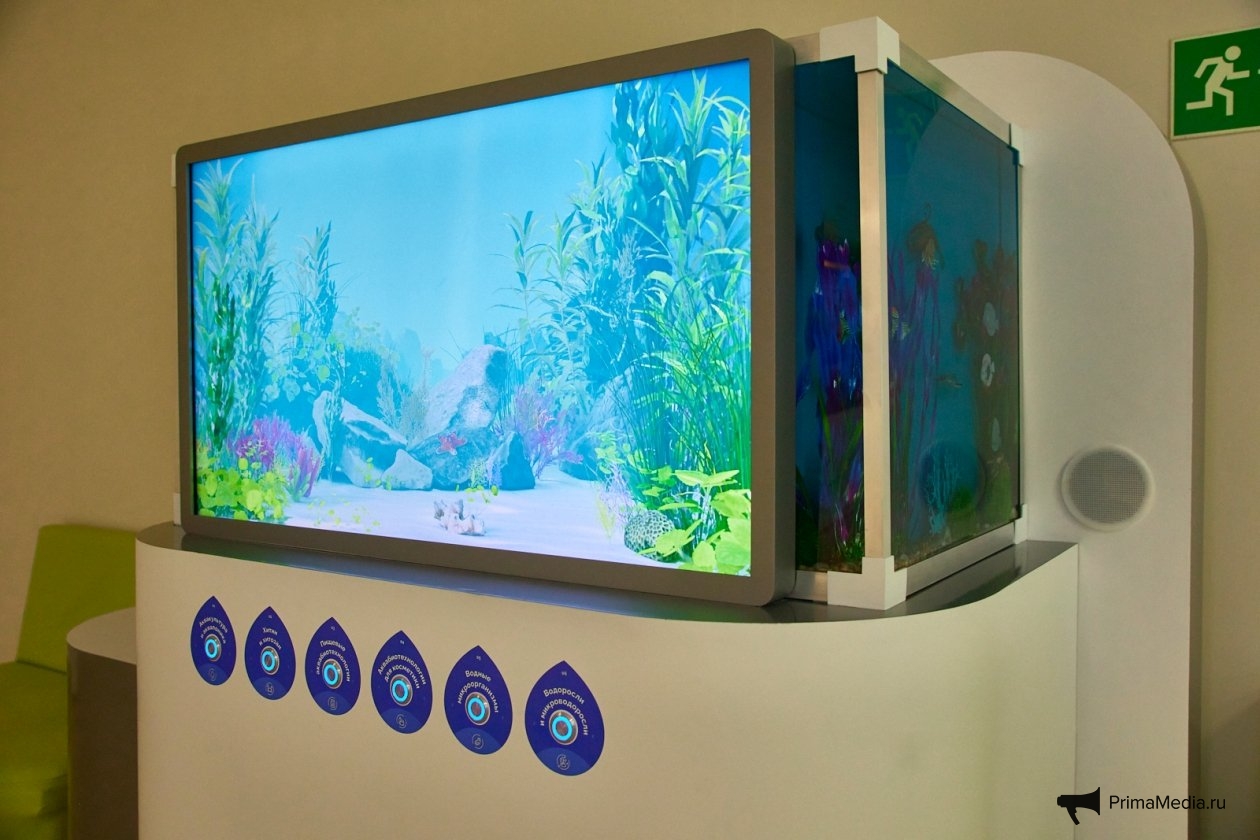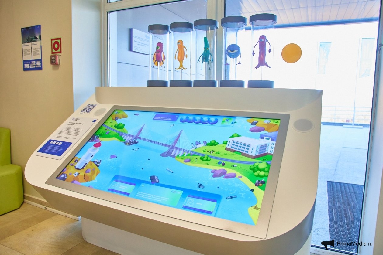 Ещё одна интерактивная зона позволяет "подобрать правильное питание для бактерий", чтобы в игровом формате "очистить пролив Владивостока от мусора". Таким образом посетители видят, как биотехнологии могут работать и в сфере экологии.
