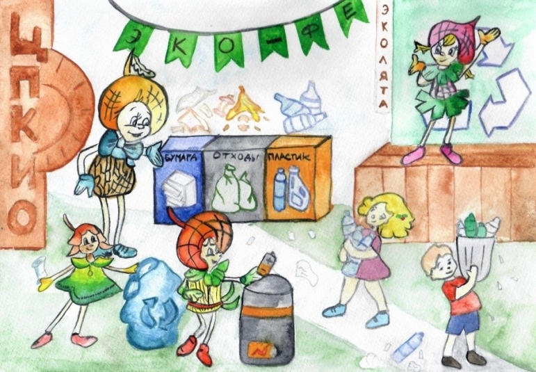 Участникам предлагалось изобразить сказочных героев Эколят, которые с помощью раздельного сбора отходов и повторного использования материалов заботятся о природе. В своих рисунках дети показали, как экологические привычки могут стать частью повседневной жизни.