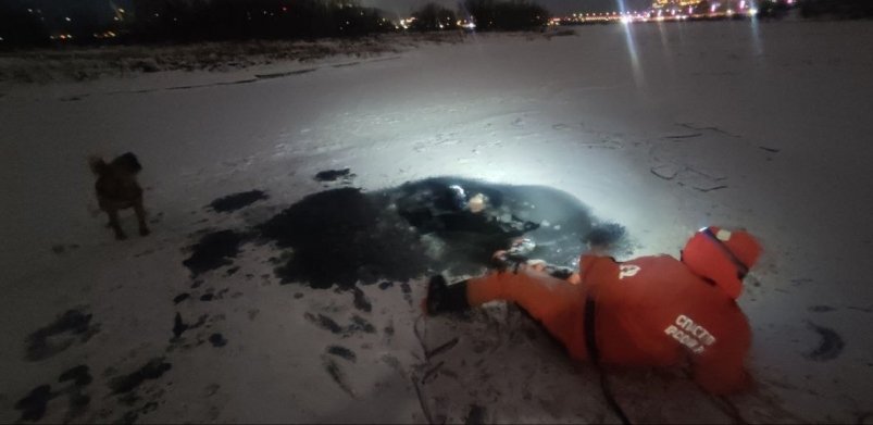 28 декабря в вечернее время мужчина гулял с собакой и вышел на тонкий лёд в районе ул. Дубровинского. Лёд не выдержал нагрузки и мужчина провалился, сообщили в пресс-службе КГКУ "Спасатель".