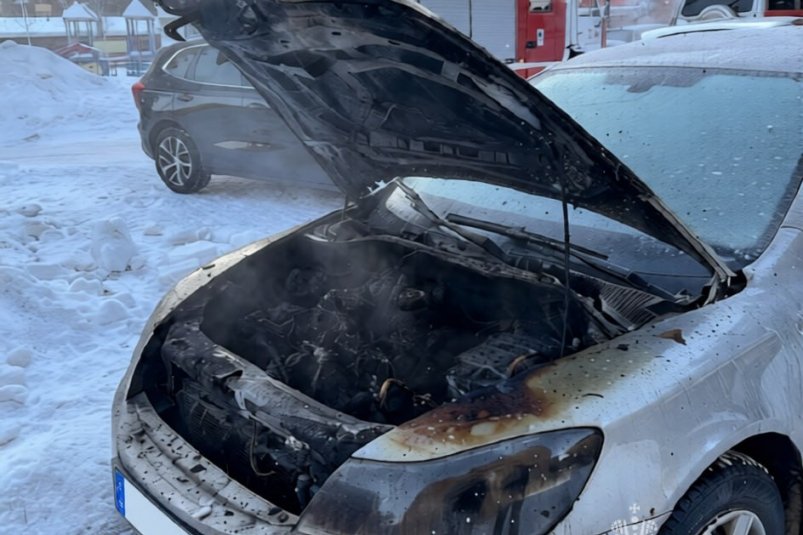 Пожар произошёл 4 февраля в утренние часы во дворе на улице 60 лет ВЛКСМ, 58. Дежурный караул СПСЧ № 10 ликвидировал возгорание. Огонь уничтожил подкапотное пространство, лакокрасочное покрытие капота и передних крыльев.
