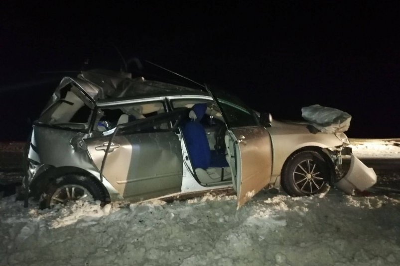 Как рассказали в Госавтоинспекции Красноярского края, вечером 8 февраля 37-летний водитель на Toyota ехал со стороны Красноярска в сторону Канска по трассе Р-255 "Сибирь". На 1034 км он выехал на встречную полосу, наехал на металлическое ограждение и столкнулся с большегрузом "Mitsubishi".