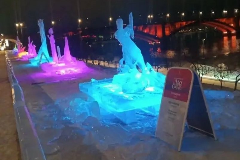 KrasnoyarskMedia, 11 февраля. Композиции "Волшебного льда Сибири" тают, поэтому приятно решение их убрать. Специалисты осмотрели ледяные фигуры и поэтому приняли такое решение, пояснили в пресс-службе мэрии Красноярска.