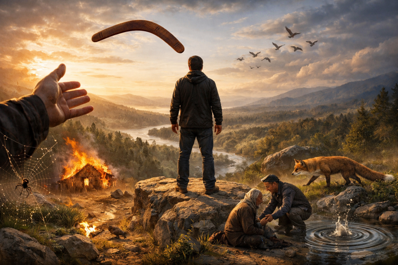Наши поступки похожи на бумеранг: они возвращаются, но не всегда туда и тогда, куда мы ожидаем. Добро может вернуться через годы, через случайных людей или неожиданные обстоятельства. То же самое касается и ошибок: их последствия иногда проявляются в самой непредсказуемой форме.