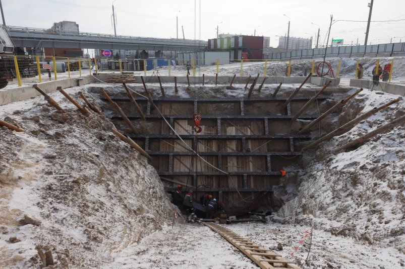 KrasnoyarskMedia, 13 марта. На станции линии метротрамвая "Улица Копылова" в Красноярске идёт строительство эскалаторного тоннеля.