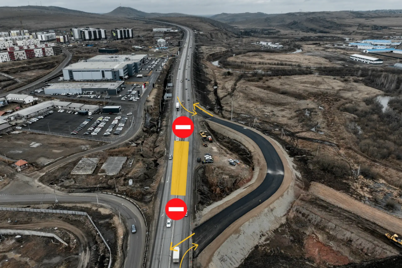 KrasnoyarskMedia, 9 апреля. 12 апреля в 12:00 на Обходе Красноярска (в районе путепровода через пр. Котельникова) изменят схему движения для транспорта. В частности, основной участок трассы будет перекрыт. Проезд организуют по объездной дороге (по одной полосе в каждую сторону).