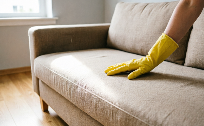 Вот что нужно делать: наденьте перчатку, слегка увлажните ладонь и "пройдитесь" по дивану круговыми движениями.