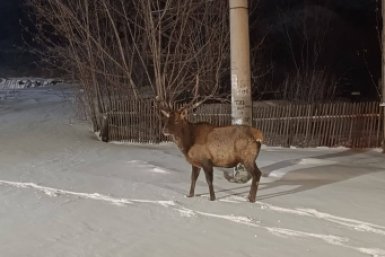В Красноярске марал вышел к людям посмотреть, как чистят дороги