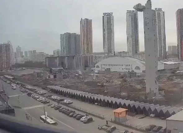 Происшествие попало на видео. На кадрах, опубликованных телеграм-каналом "Осторожно, Москва" (18+), видно, как часть сооружения сорвалась с самой верхней точки и с силой ударилась о землю. После этого обломки разлетелись на сотни метров.