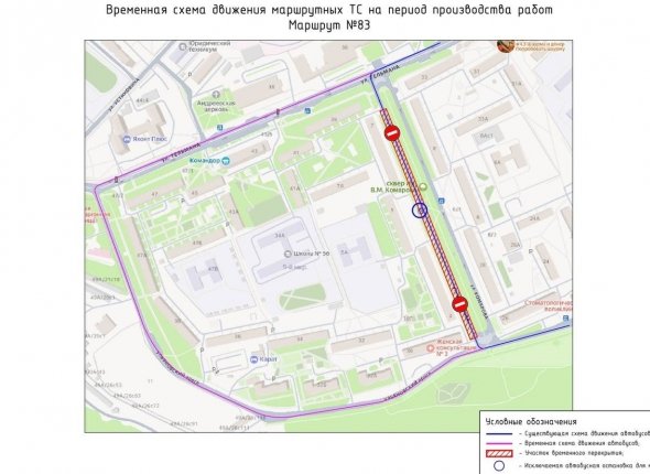 KrasnoyarskMedia, 24 ноября. С 09:00 26 ноября автобус № 83 изменит схему движения. В частности, общественный транспорт не будет ездить по ул. Комарова до 23:00 22 декабря. Из маршрута будет временно исключена остановка "улица Комарова".