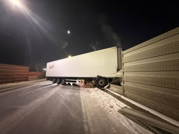 Там фура въехала в металлическое ограждение