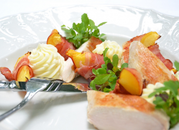 Вот и все! Изысканный салат с курицей и персиками готов! Блюдо получается сытным, но вместе с тем достаточно легким. Сладость персика и кислинка яблока подчеркивают ярко выраженный вкус курицы, а сыр придает салату нежные нотки. Про распиаренный оливье никто и не вспомнит. Приятного аппетита!