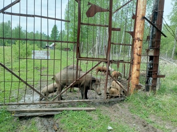 В 2025 году были выявлены на участке в Саянском лесничестве, арендованном под создание мест отдыха, вместо беседок и туристических домиков за металлической рабицей домашние свиньи и дикий кабан вепрь.