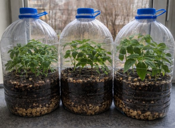 Главный принцип — сразу создать растениям достаточный объём грунта и стабильный микроклимат. В таких условиях корневая система развивается без конкуренции и пересадок, а рассада растёт равномерно и без вытягивания. Мини-парник из бутылки удерживает влагу и тепло, что особенно важно при ранних февральских посевах.