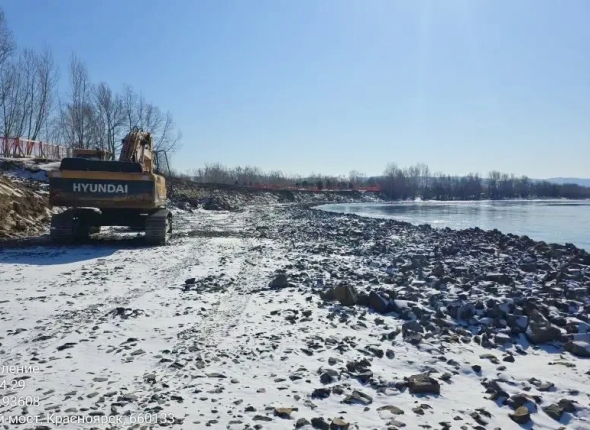 На о. Татышев на берегу Енисея продолжаются работы по укреплению берега.