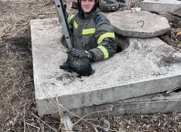 На место прибыли сотрудники МЧС, которые установили в колодец лестницу. Далее один из огнеборцев спустился вниз. Напуганного щенка вернули хозяйке.
