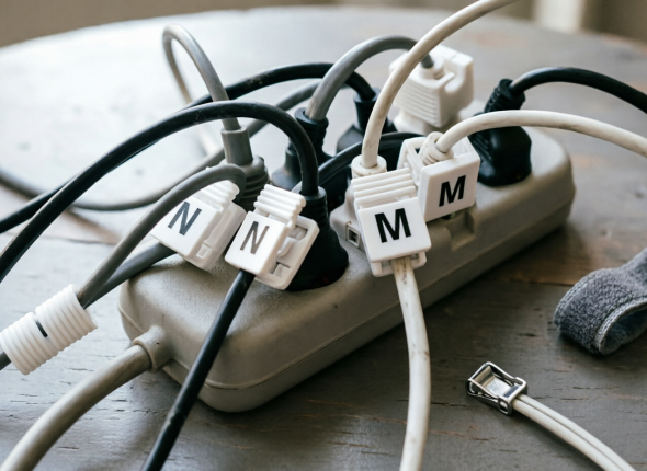 Вот секрет: возьмите пластиковые зажимы от упаковок хлеба или других продуктов. Напишите на них маркером название устройства — "телевизор", "зарядка", "ноутбук". Если места мало, достаточно пометить "бирку" одной буквой. Закрепите зажим на соответствующем проводе рядом с вилкой. Теперь вы всегда будете знать, какой кабель отключать.